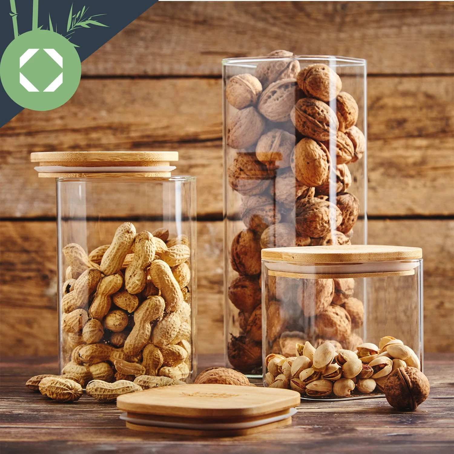 Edle Glas-Galerie mit abgerundeten Kanten: Das eckige Vorratsglas von Klarstein setzt einen stilvollen Akzent in deiner Küche und hält deine Vorräte lange frisch!