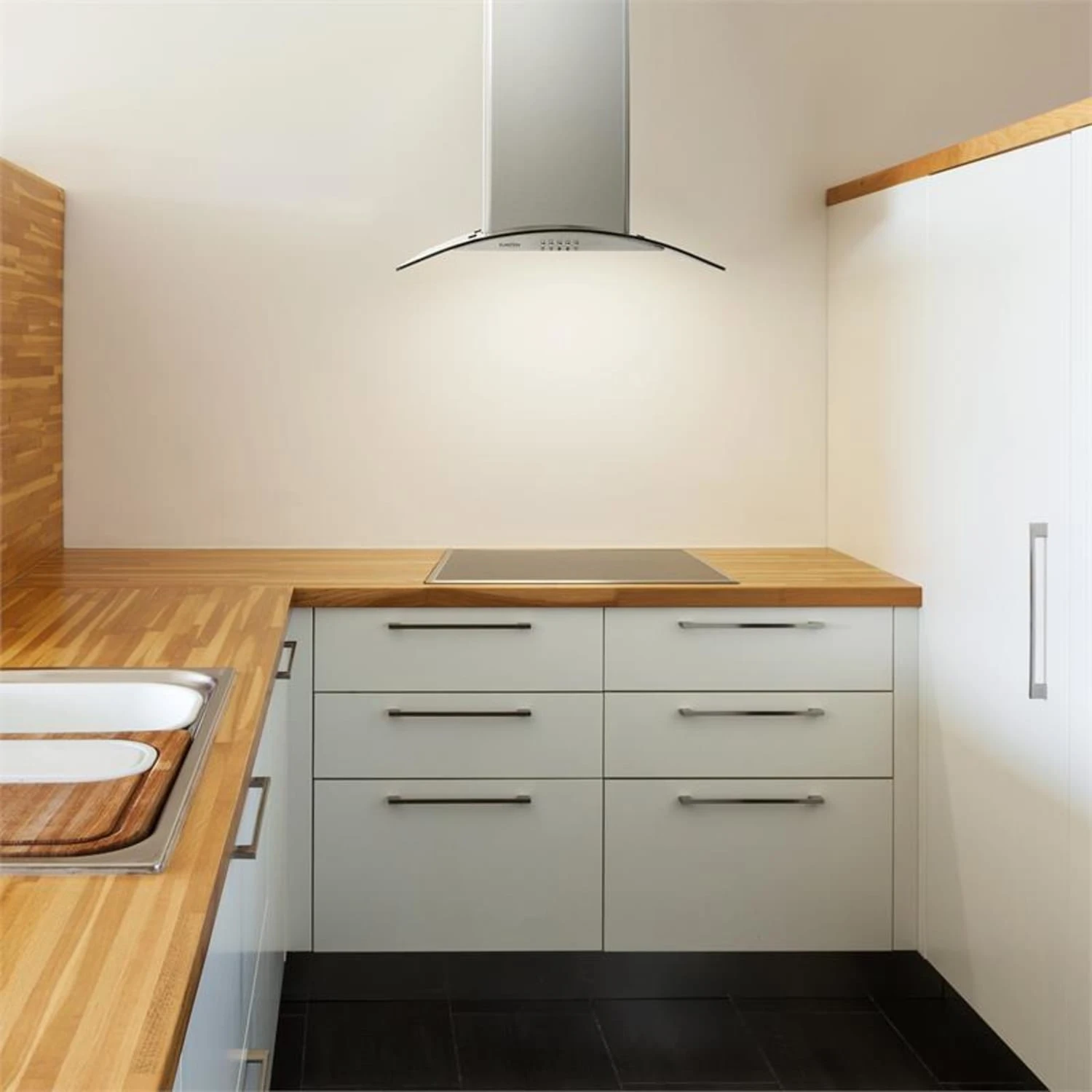 Mit 60 cm Breite überspannt die Haube gekonnt kleinere Kochflächen ohne selbst viel Platz zu beanspruchen. Damit ist sie die ideale Ergänzung für Küchen in Kleinhaushalten oder WGs. Die höchste Leistungsstufe befördert pro Stunde bis zu 620 Kubikmeter Abluft aus der Küche und wird so auch mit der Zubereitung mehrerer Gänge fertig. Dank moderner Technik schont sie durch reduzierten Stromverbrauch den Geldbeutel und die Umwelt. Eine einfache Bediensektion an der Frontseite ermöglicht die Wahl der 3 Ventilationsstufen. Eine integrierte Beleuchtung sorgt für viel Licht auf der Kochfläche, sodass passionierte Köche genau sehen, was sie gerade tun.