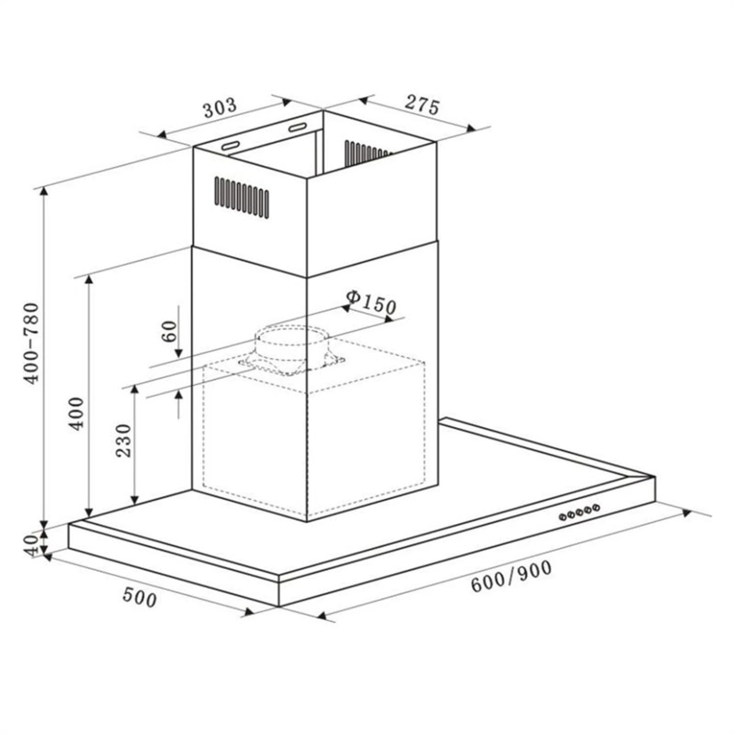 Mit 90 cm Breite ist sie auch für ausschweifende Kochflächen und Küchenzeilen bestens geeignet. Die höchste Leistungsstufe befördert pro Stunde bis zu 620 Kubikmeter Abluft aus der Küche und wird so auch mit der Zubereitung mehrerer Gänge fertig. Dank moderner Technik schont sie durch reduzierten Stromverbrauch den Geldbeutel und die Umwelt. Die einfache Bediensektion an der Frontseite ermöglicht die Wahl der 3 Ventilationsstufen. Ein Abschalttimer lässt die Haube nach dem Kochen nachlüften und schaltet sie dann selbstständig ab. Zwei integrierte Leuchten sorgen für viel Licht auf Kochfläche, sodass passionierte Köche genau sehen, was sie gerade tun.