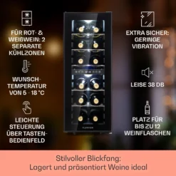 Shiraz 12 Slim Uno Weinkühlschrank 32l/12Fl.Touch 85 W 5-18 °C LED