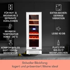 Vinovilla 17 Built-In Duo Weinkühlschrank 2 Zonen 53l 17 Fl. Glastür