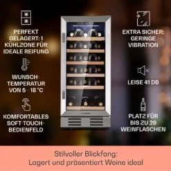 Vinovilla 7 Built-in Uno Einbau-Weinkühlschrank Glas Edelstahl