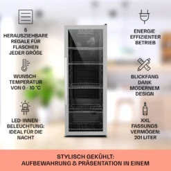 Beersafe 6XL Kühlschrank 201 Liter 5 Böden Panoramaglastür Edelstahl