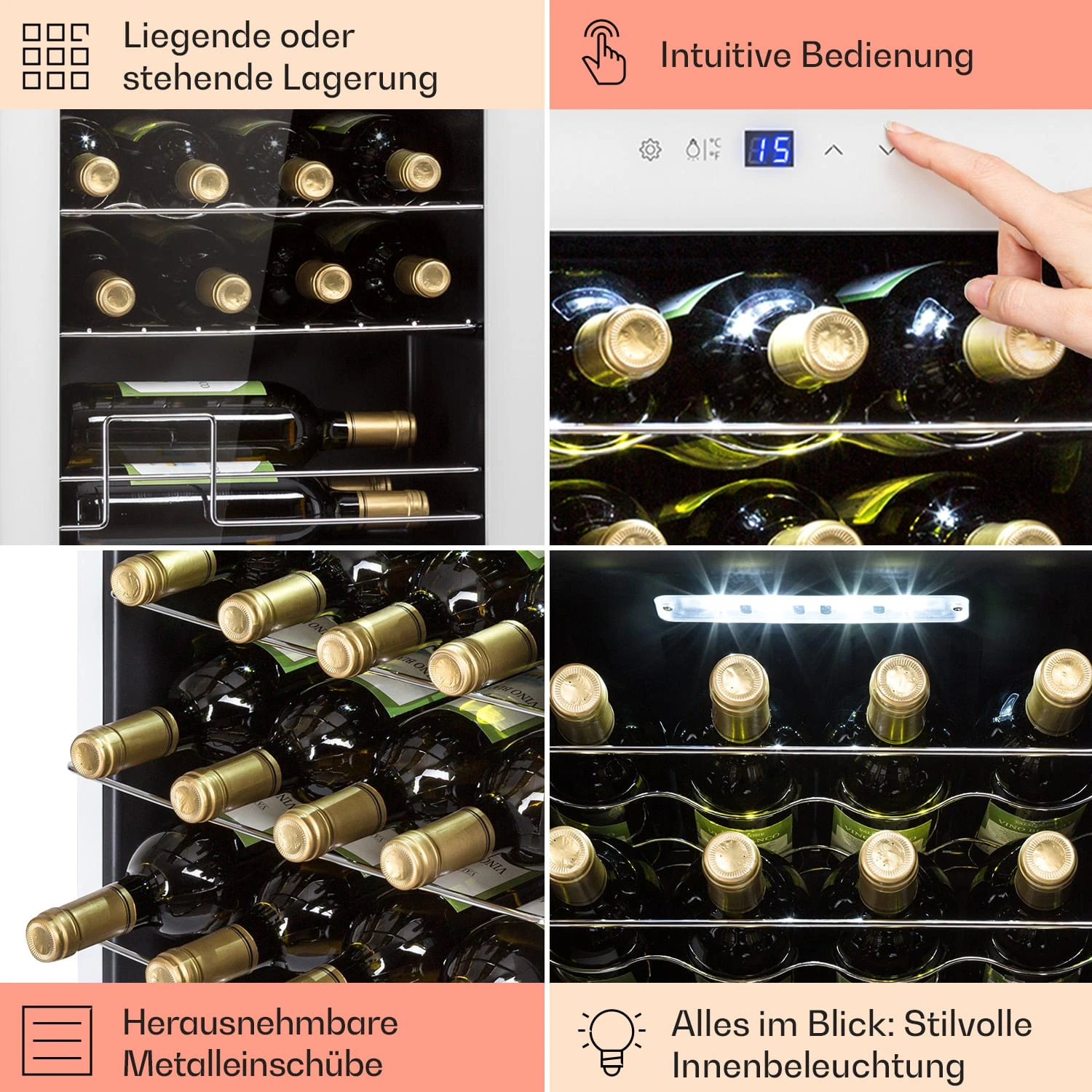 Aus Liebe zum Wein: Der Klarstein Shiraz 28 Uno Weinkühlschrank sorgt für besten Weingenuss, indem er edlen Tropfen die richtige Trinktemperatur verschafft. Dabei glänzt er mit seinem kompakten Design und setzt den Wein gekonnt in Szene – insbesondere durch seine Fronttür aus Sicherheitsglas. So kannst du insgesamt 28 Flaschen Wein perfekt präsentieren und dank der Innenbeleuchtung atmosphärisch inszenieren.