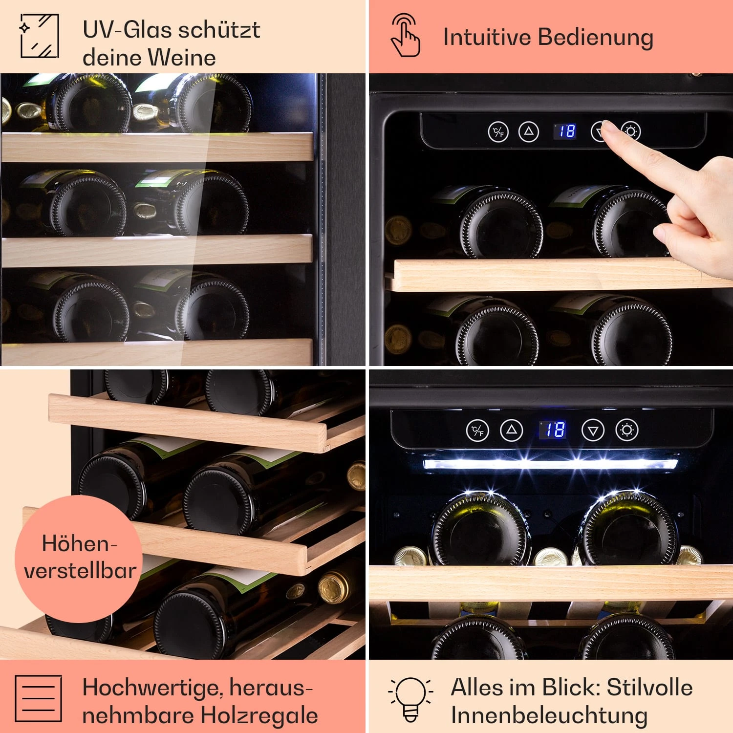 Für Connaisseurs und Design-Liebhaber: Der Vinovilla 29 Built-In Uno von Klarstein bietet stilvollen Lagerraum für Wein, Sekt und Champagner.